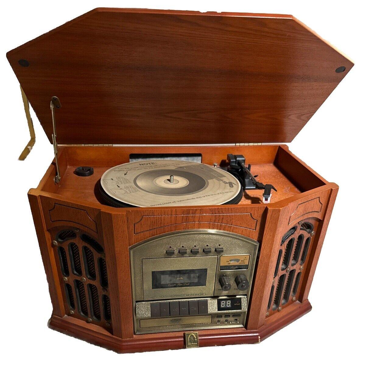 Teac CD Recorder/Radio/Record Player System. Retro-styled compact stereo with a full-function 3-speed turntable and a CD player/recorder. Record from the turntable or from an external analog source (CD, cassette, reel-to-reel, MP3). Stereo 3” speakers, backlit LCD and headphone jack. Includes an FM/AM radio. Measures 18.9” wide x 9” height x 15” deep. All functions work fine. In good used condition.