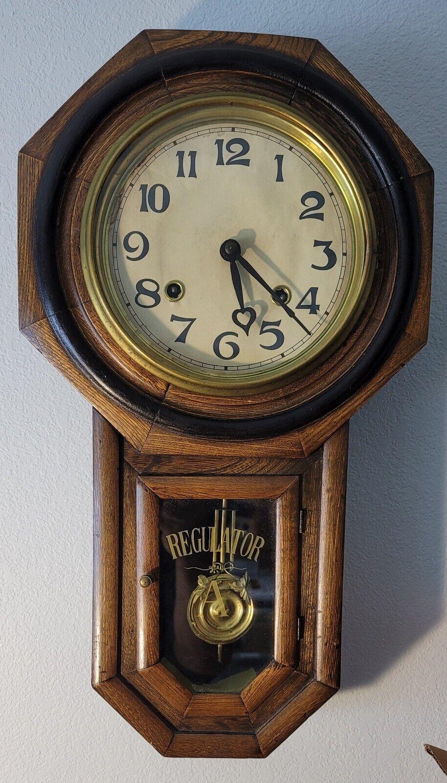 Vintage D&A Schoolhouse Regulator Wall Clock USED Working with Pendulum & Key